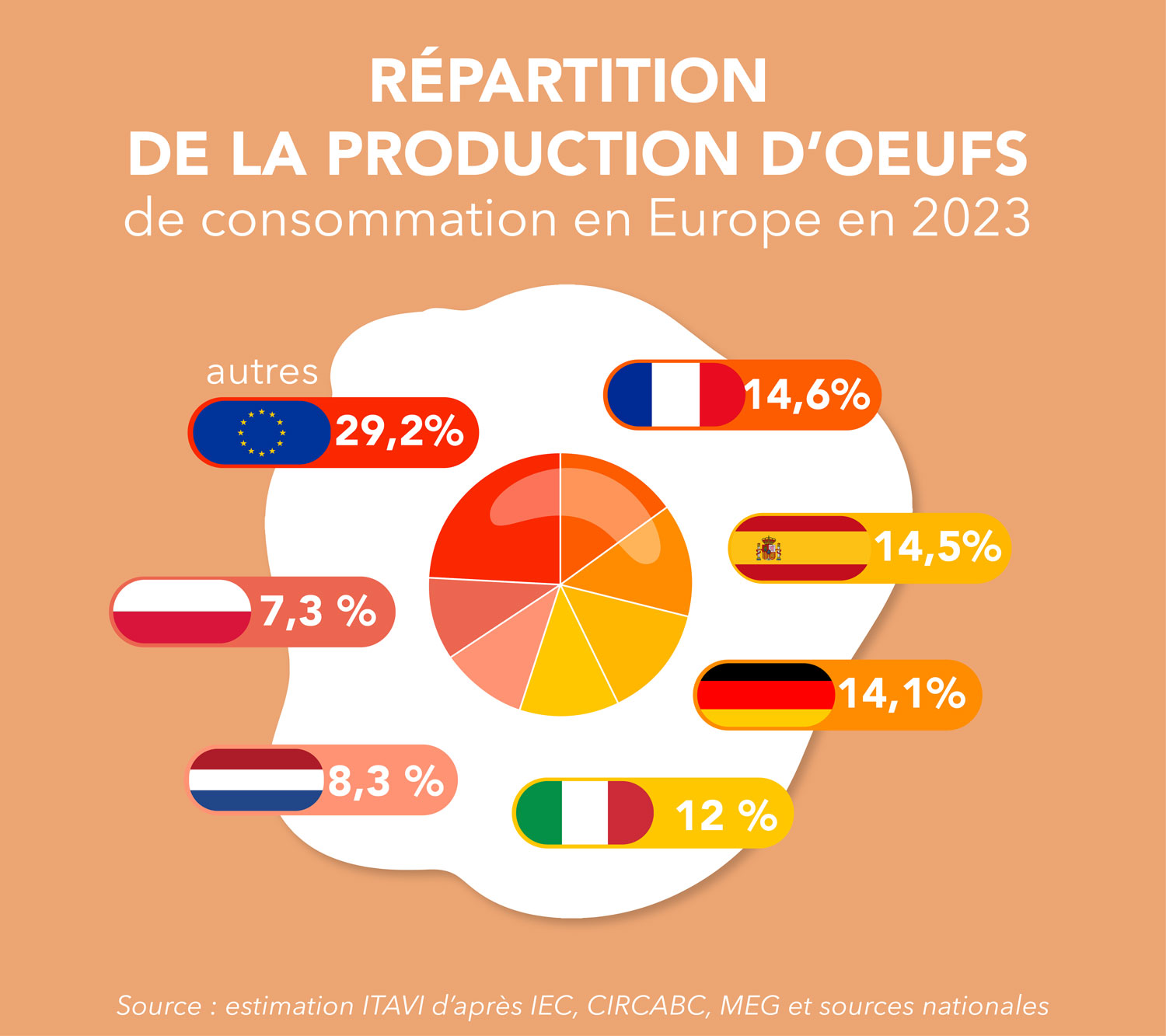 Le pays a ainsi retrouvé sa 1ère place des pays producteurs d’œufs de l’Union européenne, avec 14,7 % de la production de la zone. Elle est suivie de l’Espagne puis de l’Allemagne, avec qui elle était ex æquo en 2022.