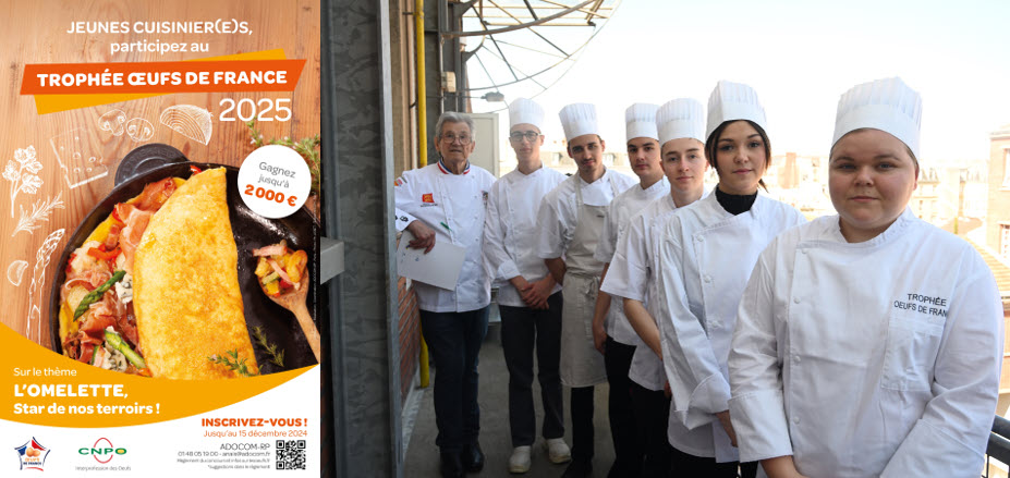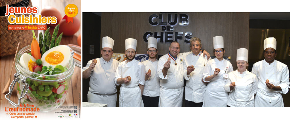 Depuis 2011 le CNPO a initié un concours « L’œuf dans toutes ses recettes » qui s’adresse aux jeunes de 16 à 24 ans toujours sur des thèmes différents par exemple :